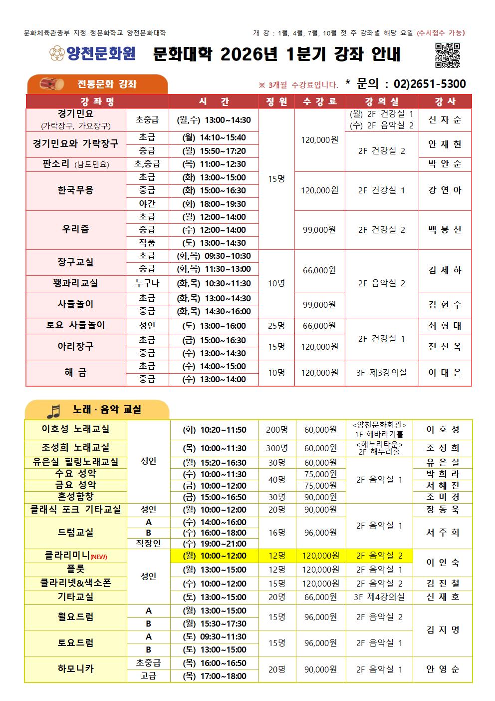 | 2025년 1분기 문화대학 종합강좌 안내 (신규강좌 포함) (0) | 2025.01.20 |